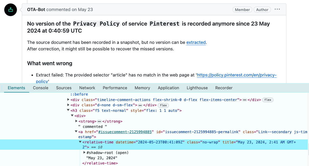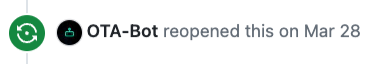 validUntil dateGo to the open issue and scroll to the last action from OTA-Bot (comment or issue opening).